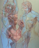 Es geht um Haut und persönliche Identität, Menschliches und Tierisches, den elenden, ohnmächtigen Gedärmesack, der es mit einer höheren Instanz aufnimmt. Jedes Bild dieses Zyklus ist ein aus der Linie geborenes Zellgewebe, das uns animiert, die gewendete Haut des Sartyrs in ihrer Vergegenständlichung der Beziehung von innerer und äußerer Welt zu interpretieren und das Verhältnis von Körper und Verkörperung neu, also aktuell, ja möglicherweise „post-human“ zu betrachten. Das Verstummen des Marsyas impliziert darüber hinaus die permanente Angst des Künstlers, durch das Bloßlegen des Ichs nicht nur schutzlos, sondern gänzlich zum Schweigen gebracht zu werden.