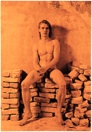 Tracks can be read in two directions: both coming and going. And so sits the young man - as naked as an unwritten book - on a pile of old stones. Once they were useful for something, and will be again, somehow, sometime - perhaps then when the youth shifts his gaze from the distance down to his hands that, likely unaware, he already rubs.
